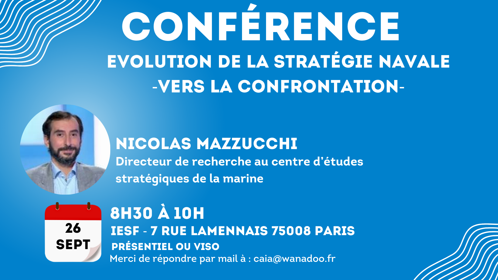 Dans cette période où le terme de VICA (Vulnérabilité, Incertitudes, Complexité, Ambiguité), prend tout son sens, Nicolas Mazzucchi nous éclairera sur les évolutions en cours : retour vers des conflits de forte intensité dans l'espace aéro-maritime, montée en puissance de la marine chinoise, investissements considérables des principaux acteurs de l'échiquier international, croisement des évolutions stratégiques avec les nouvelles technologies, multiplication des modes d'action, avec la nécessaire prise en compte du combat dans les espaces cyber et de drones aériens, de surface et sous-marins.